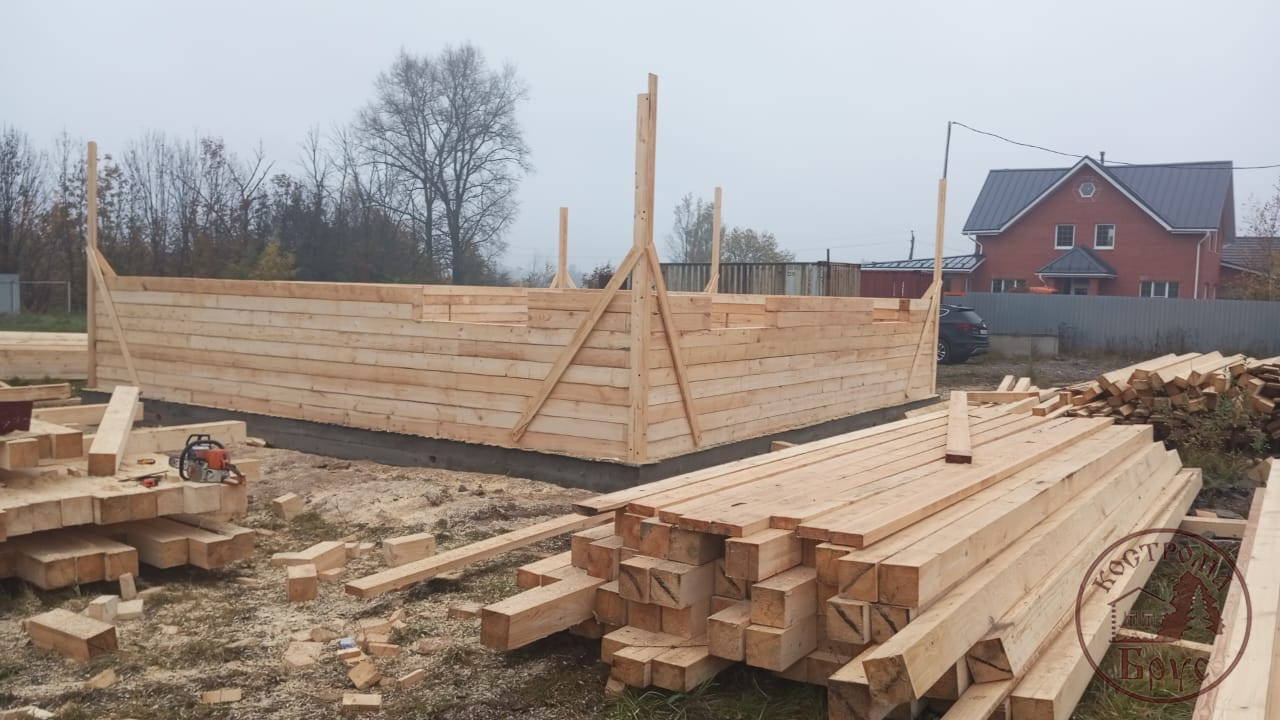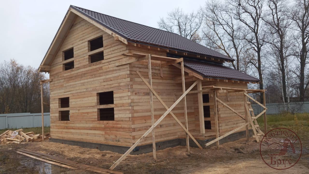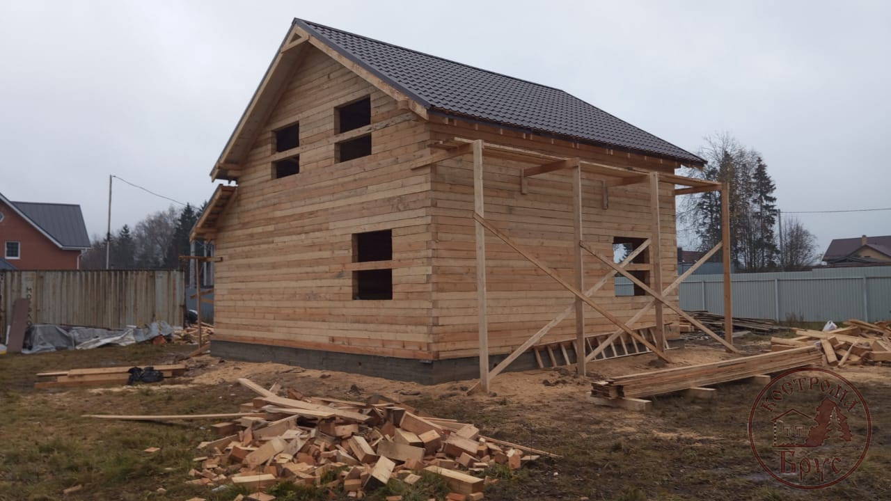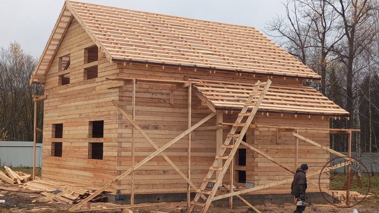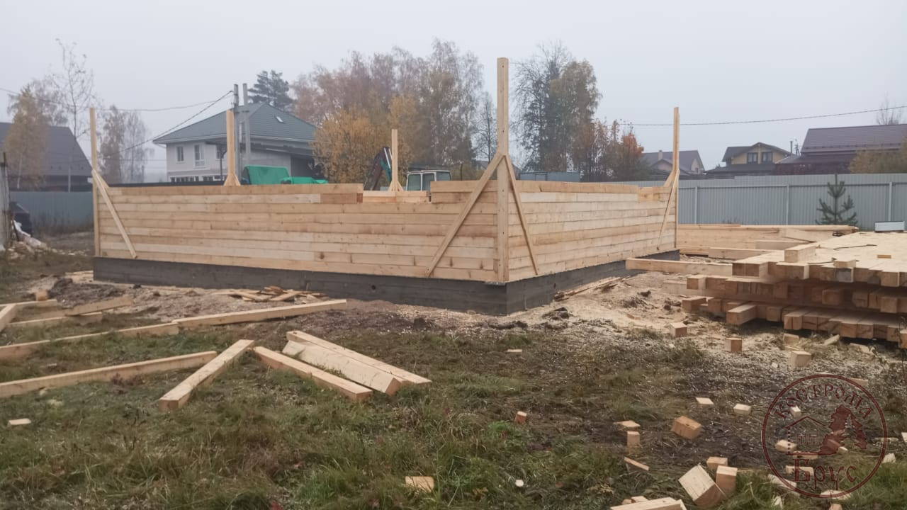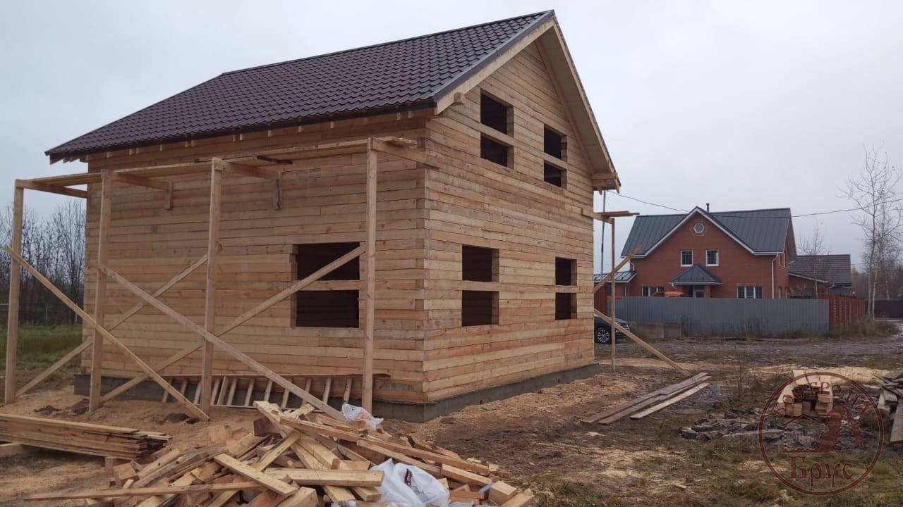 Строительство дома 8х8 из обычного бруса под усадку по проекту ДБ-25: