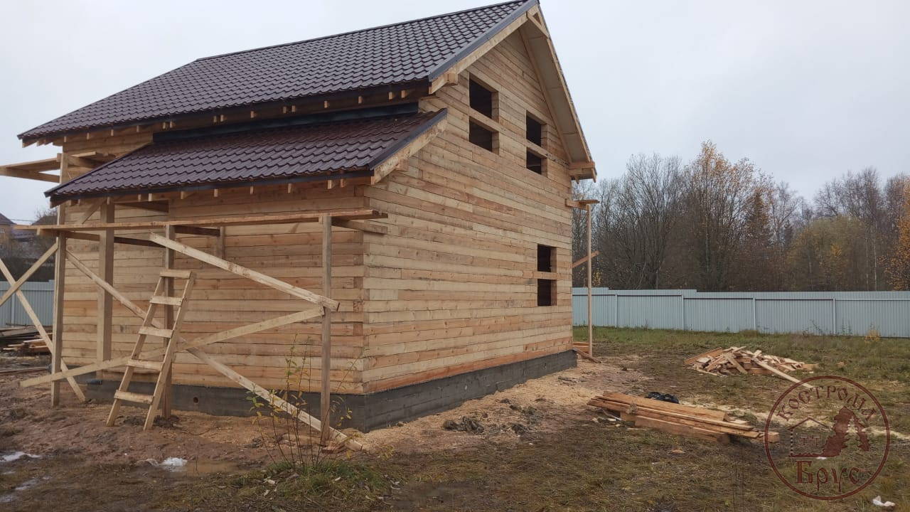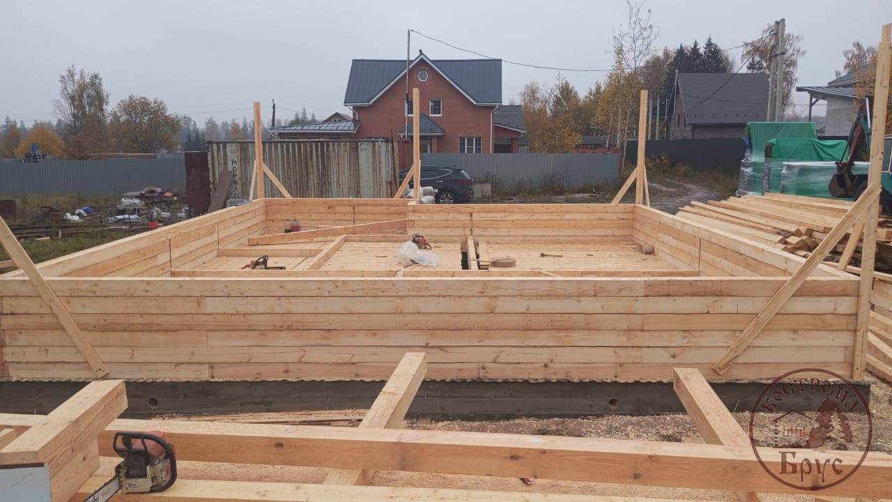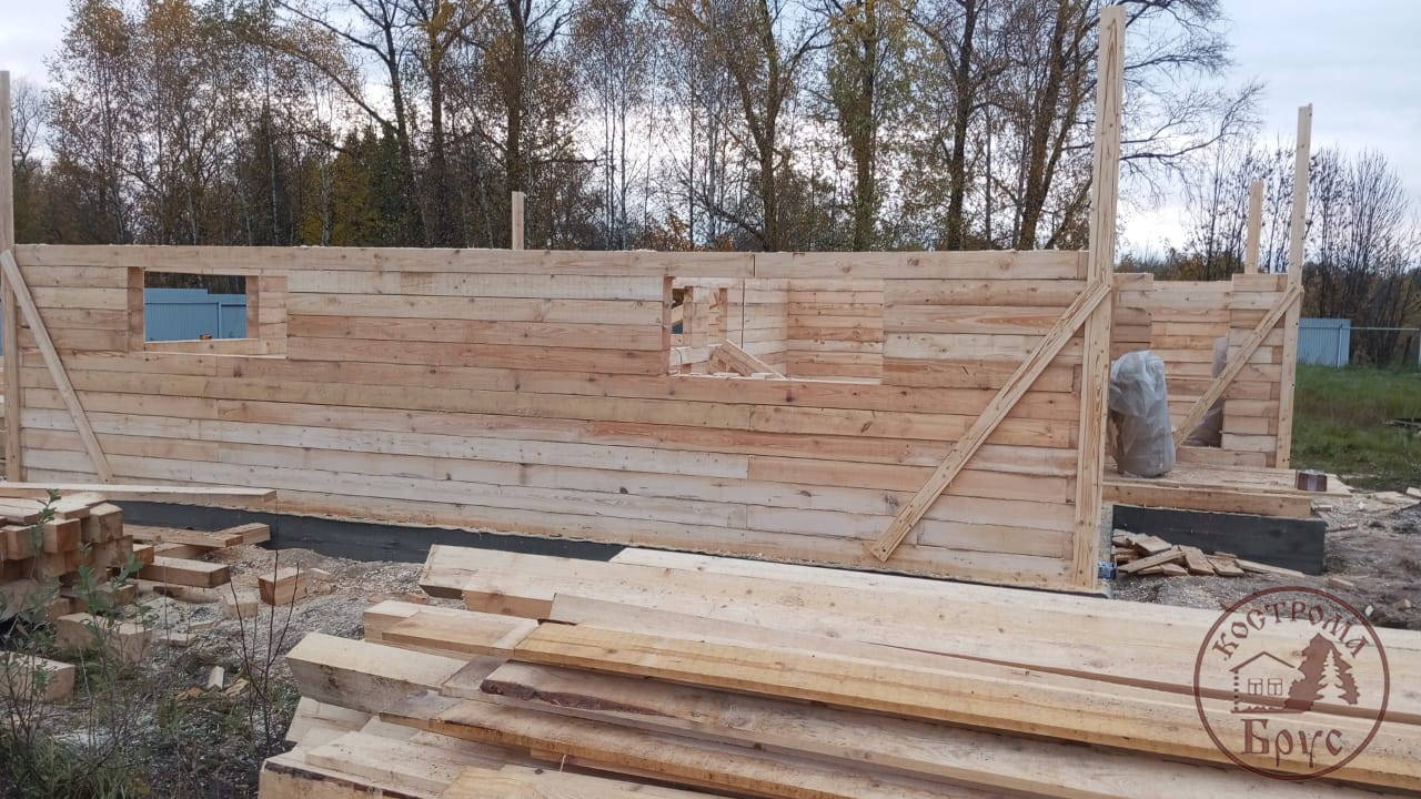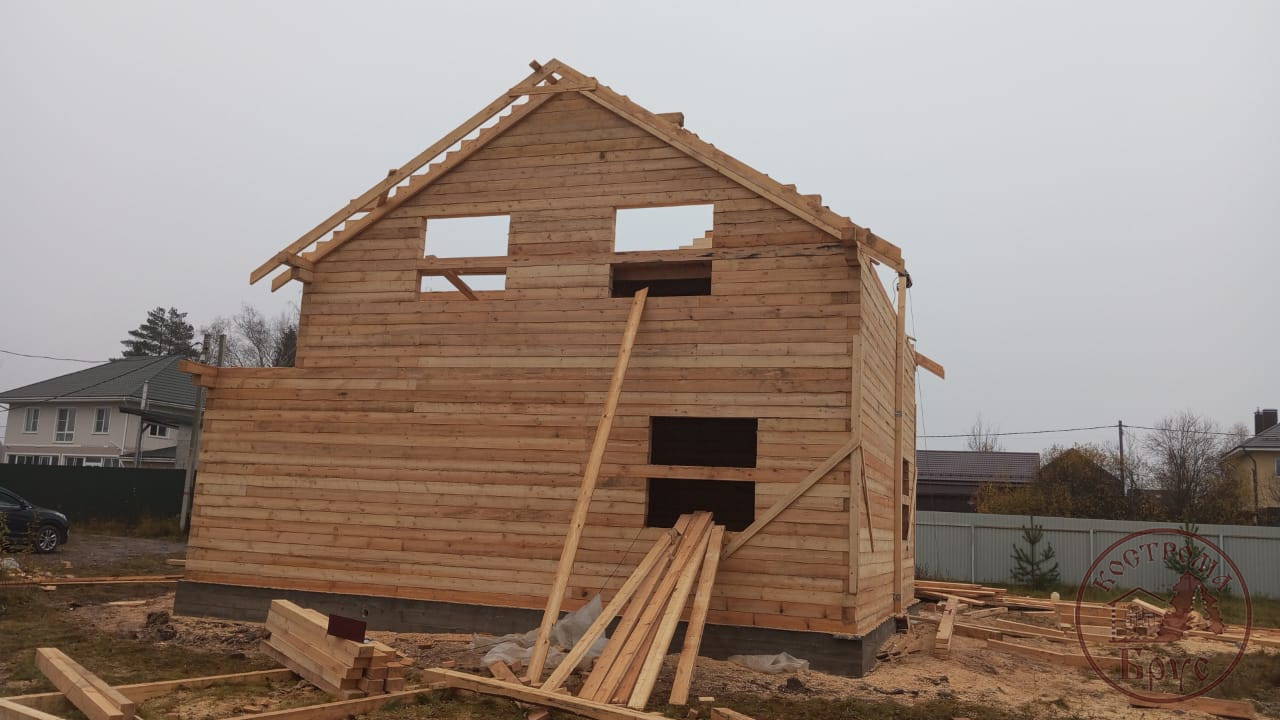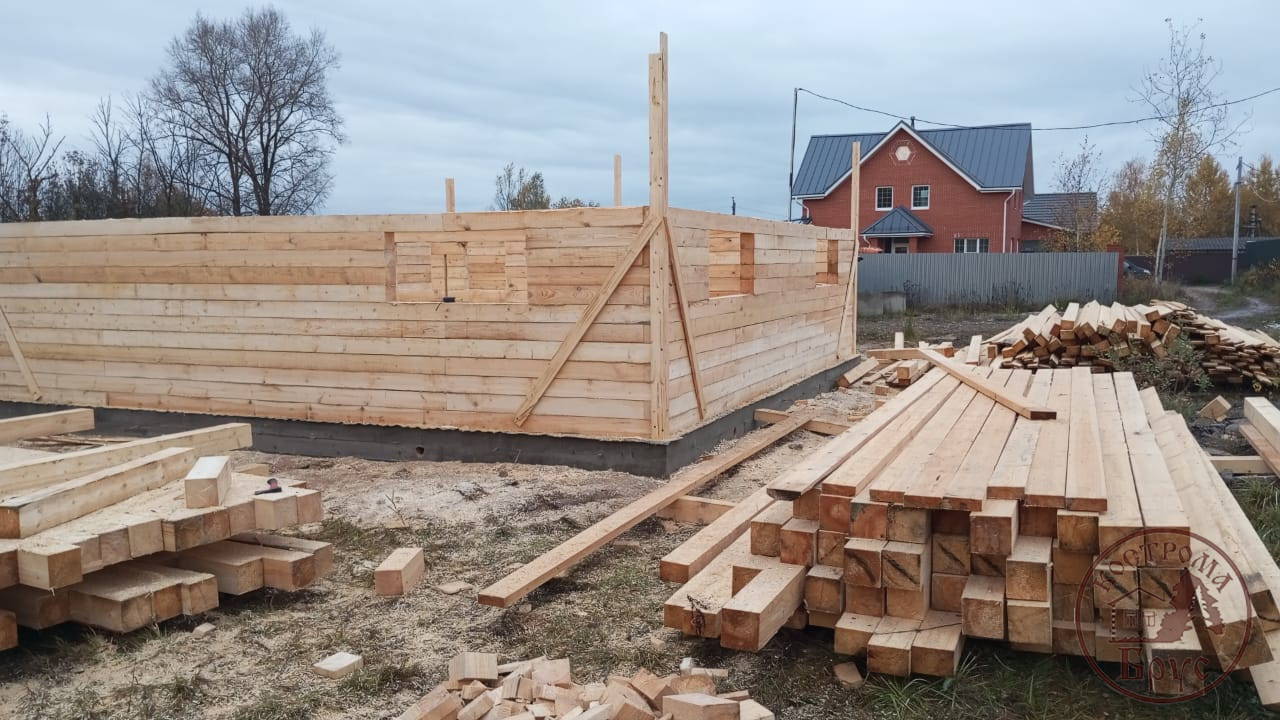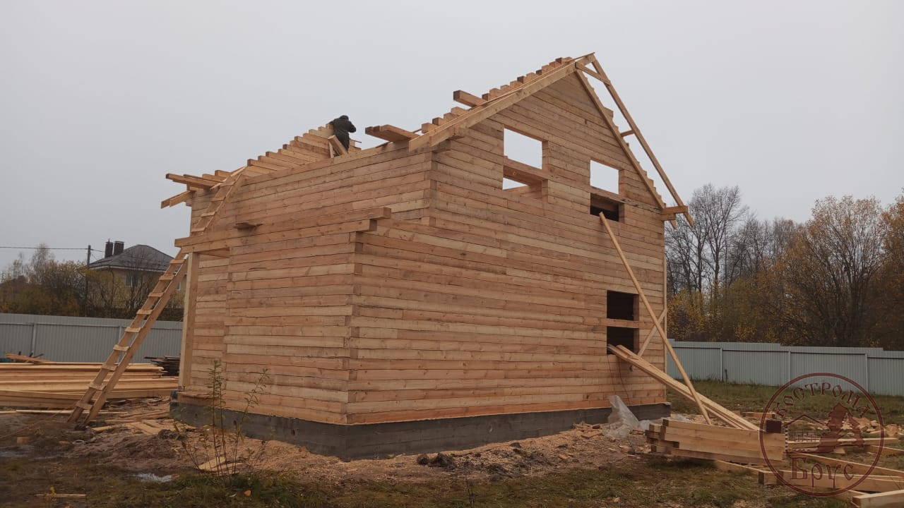 Строительство дома 8х8 из обычного бруса под усадку по проекту ДБ-25: