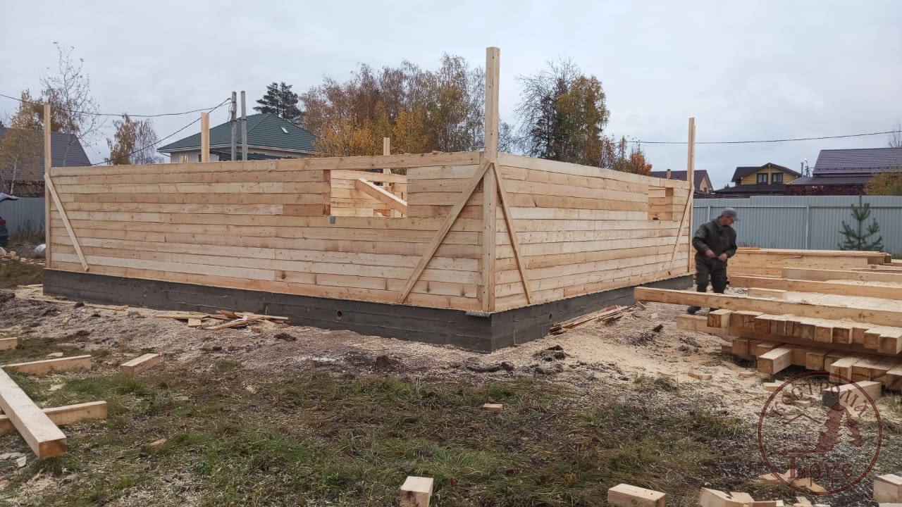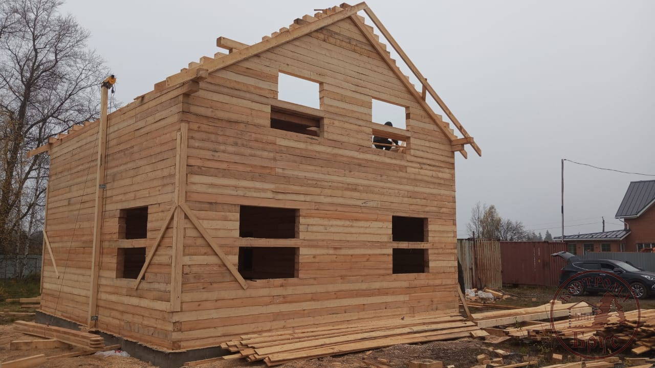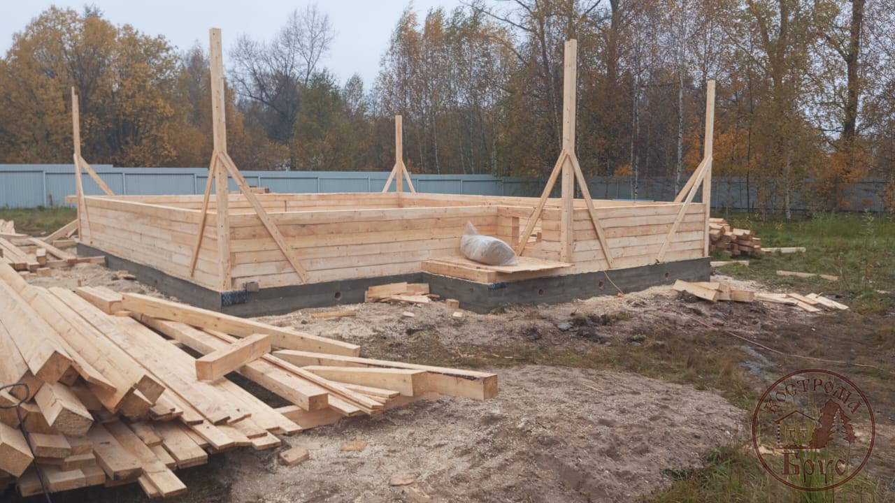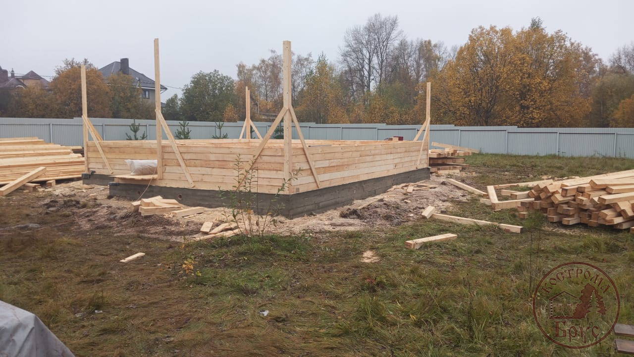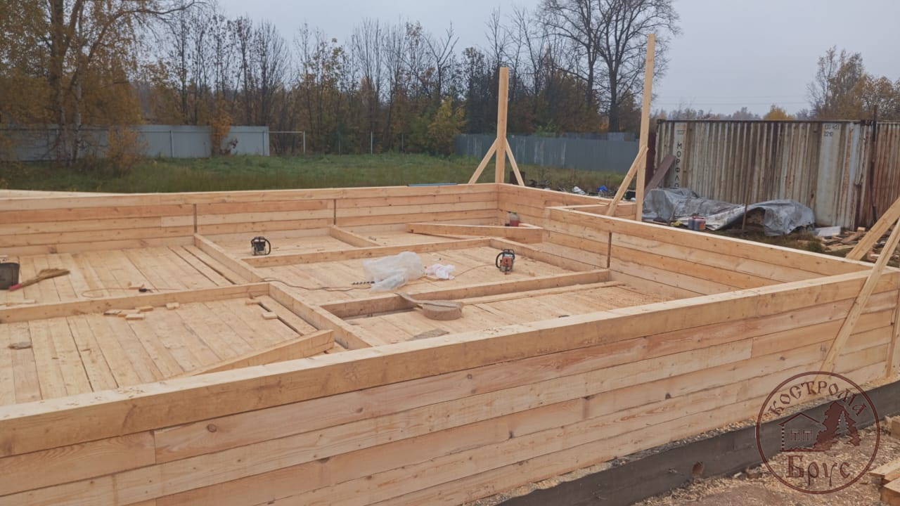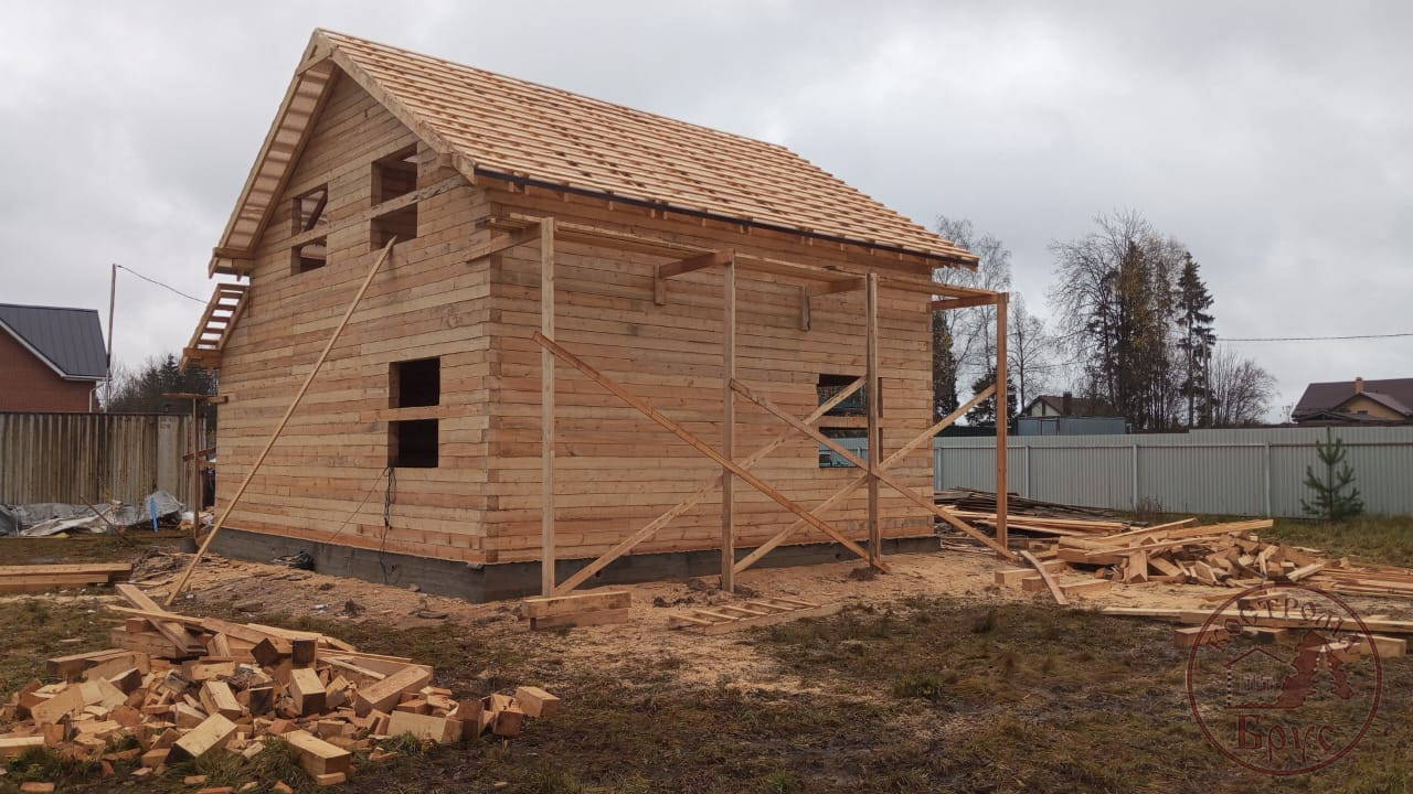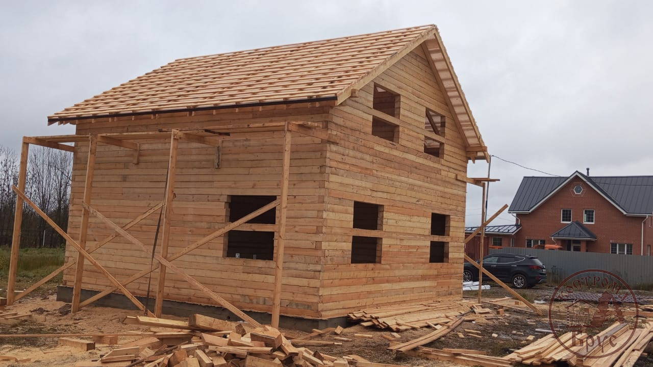 Строительство дома 8х8 из обычного бруса под усадку по проекту ДБ-25:
