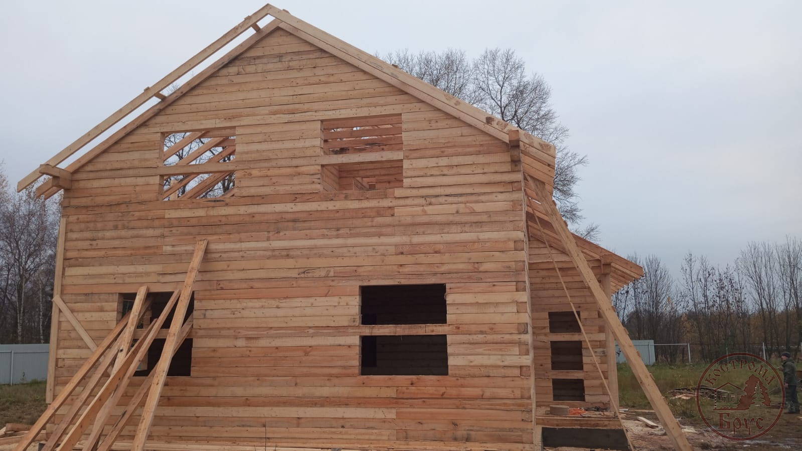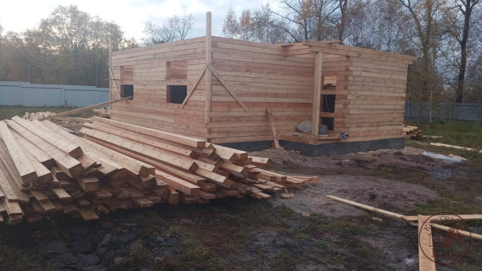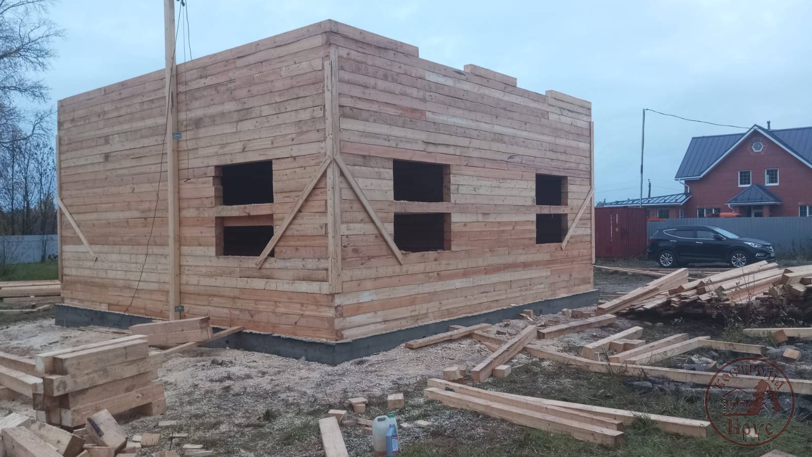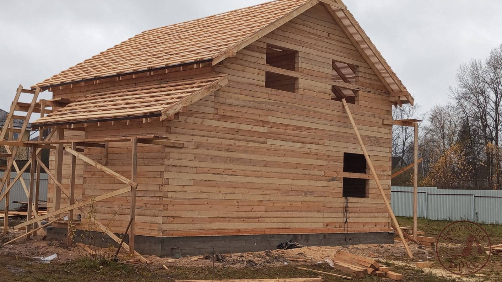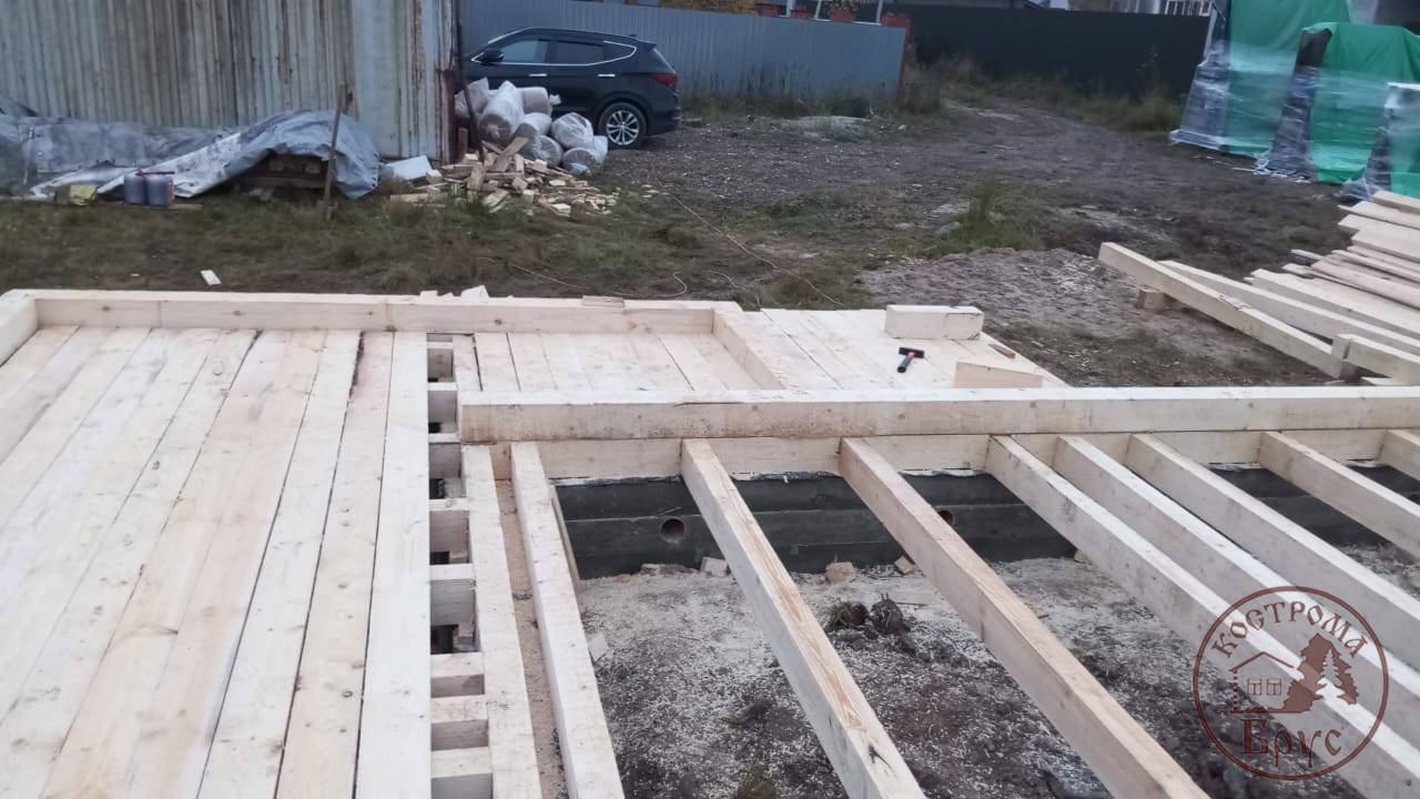 Строительство дома 8х8 из обычного бруса под усадку по проекту ДБ-25: