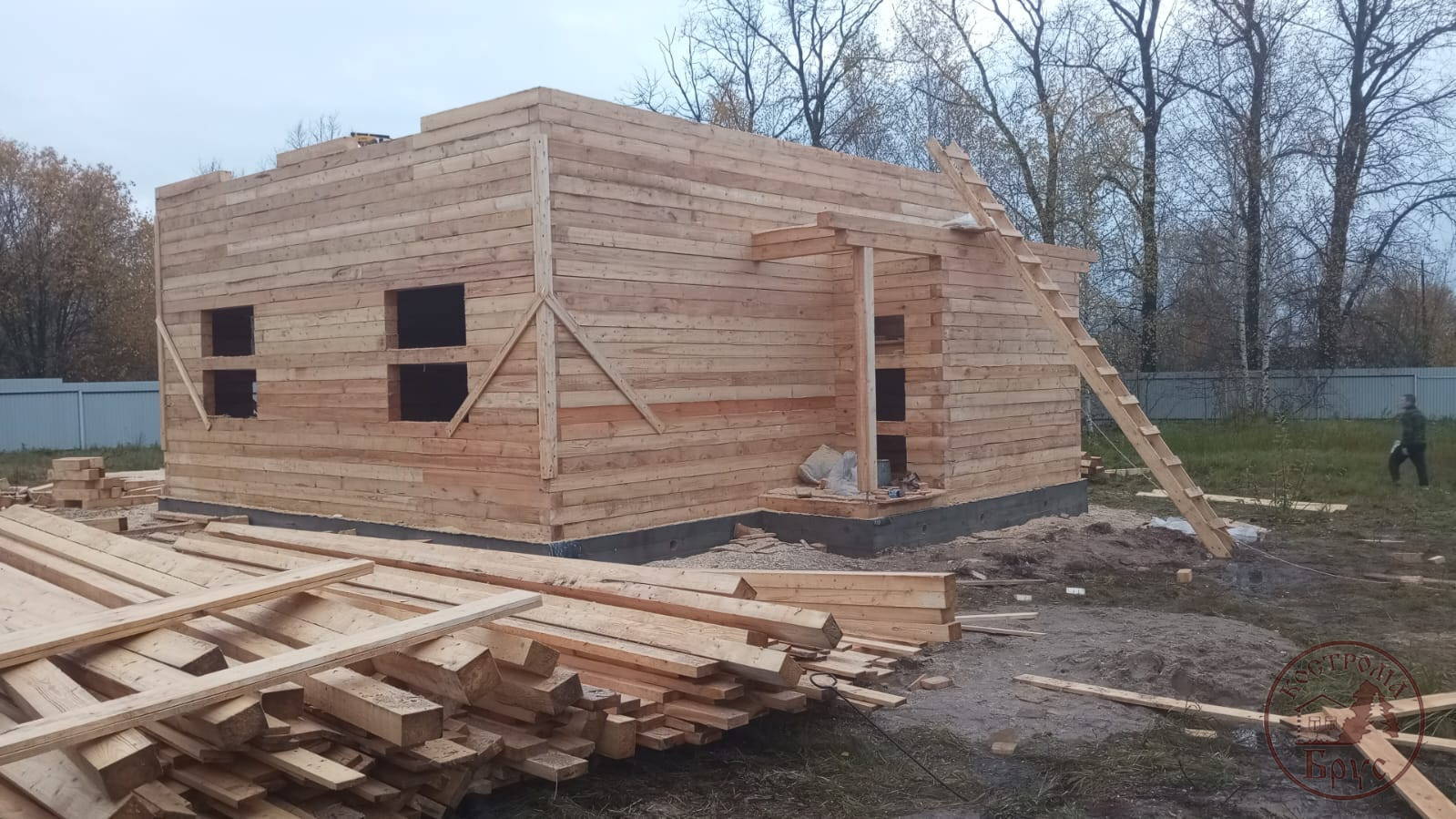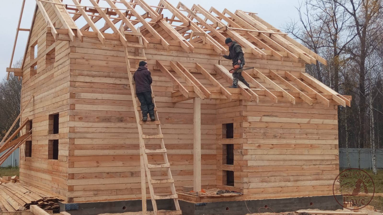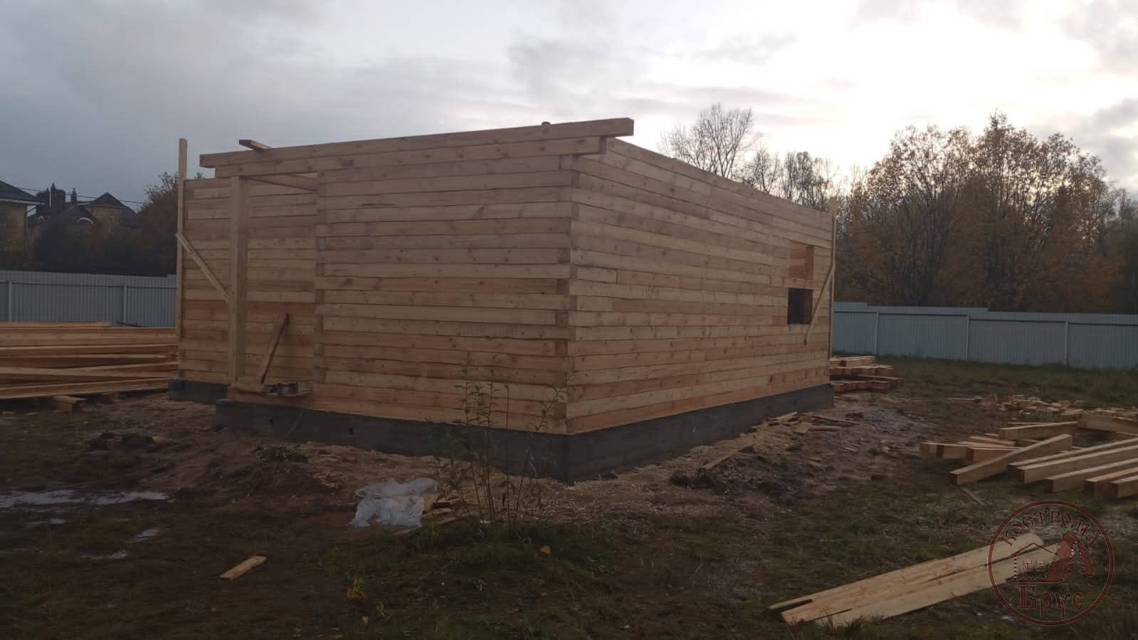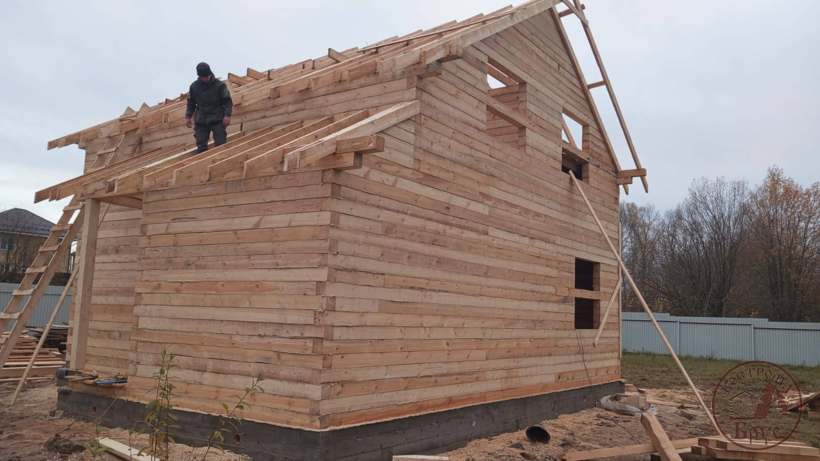 Строительство дома 8х8 из обычного бруса под усадку по проекту ДБ-25: