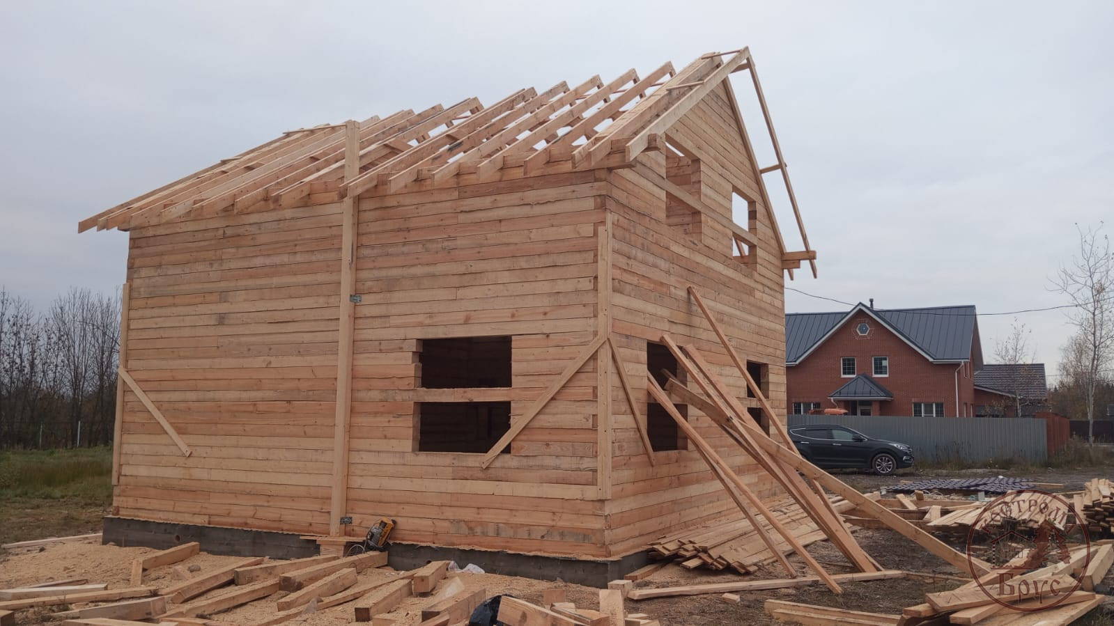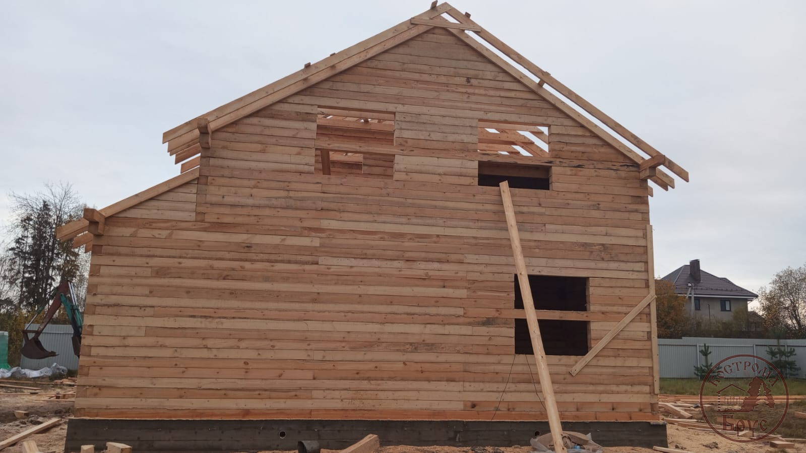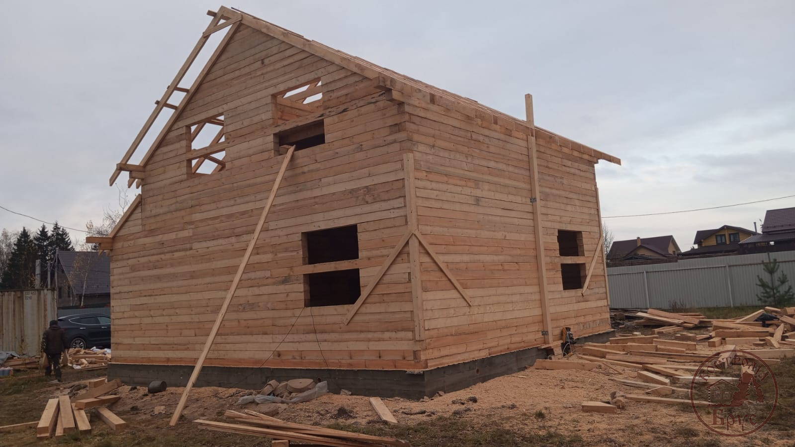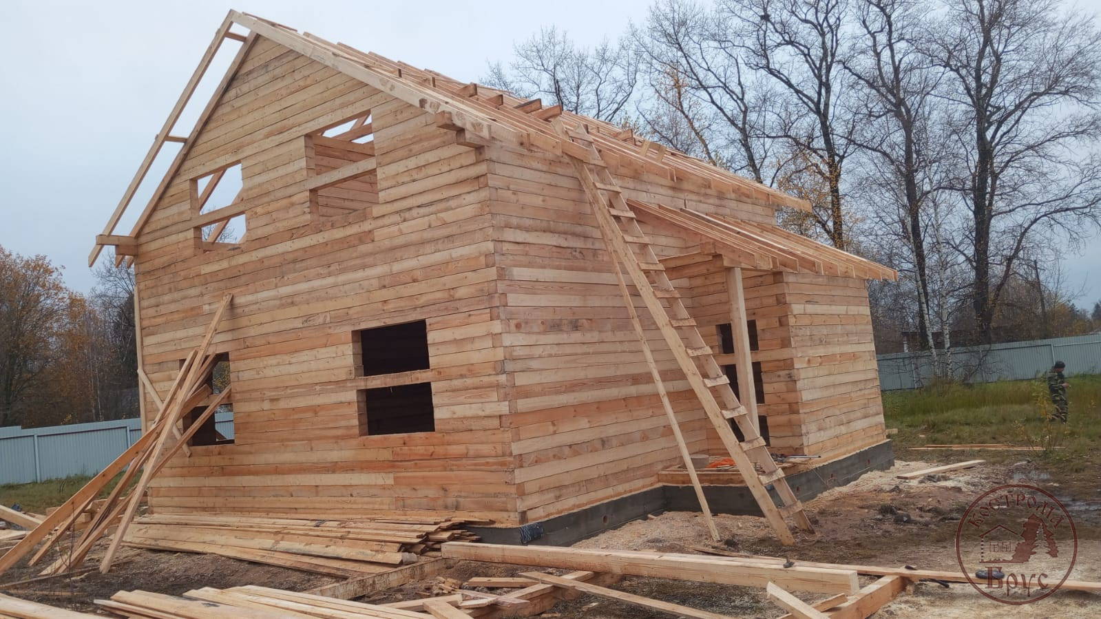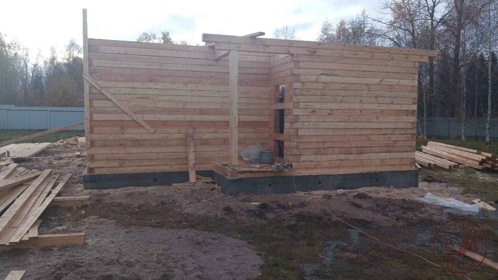 Строительство дома 8х8 из обычного бруса под усадку по проекту ДБ-25: